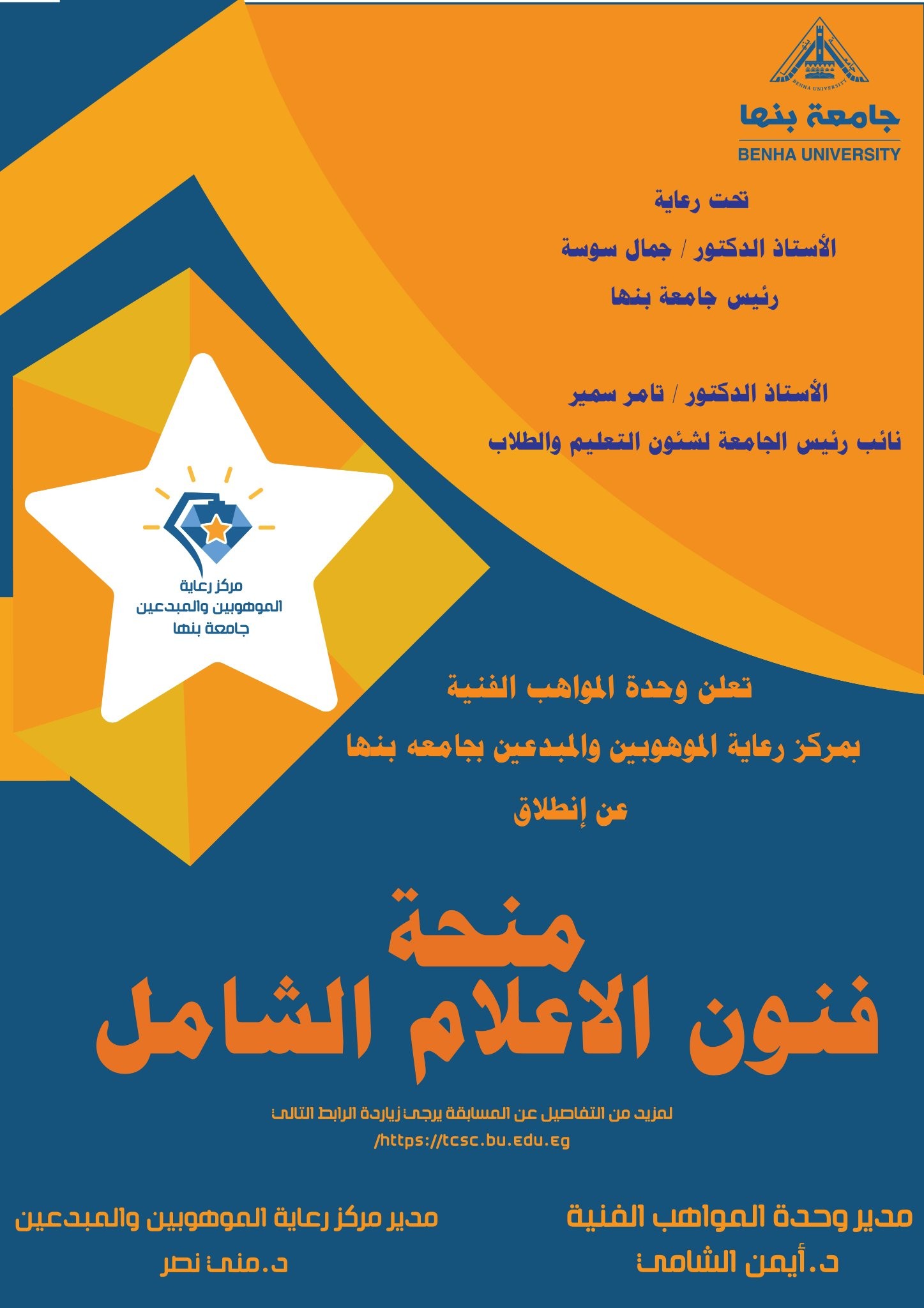 ولأن صناعة الاعلام بتؤثر في حياتنا بشكل مباشر مركز رعاية الموهوبين والمبدعين بجامعة بنها يعلن عن منحة الاعلام الشامل في المجالات التالية: