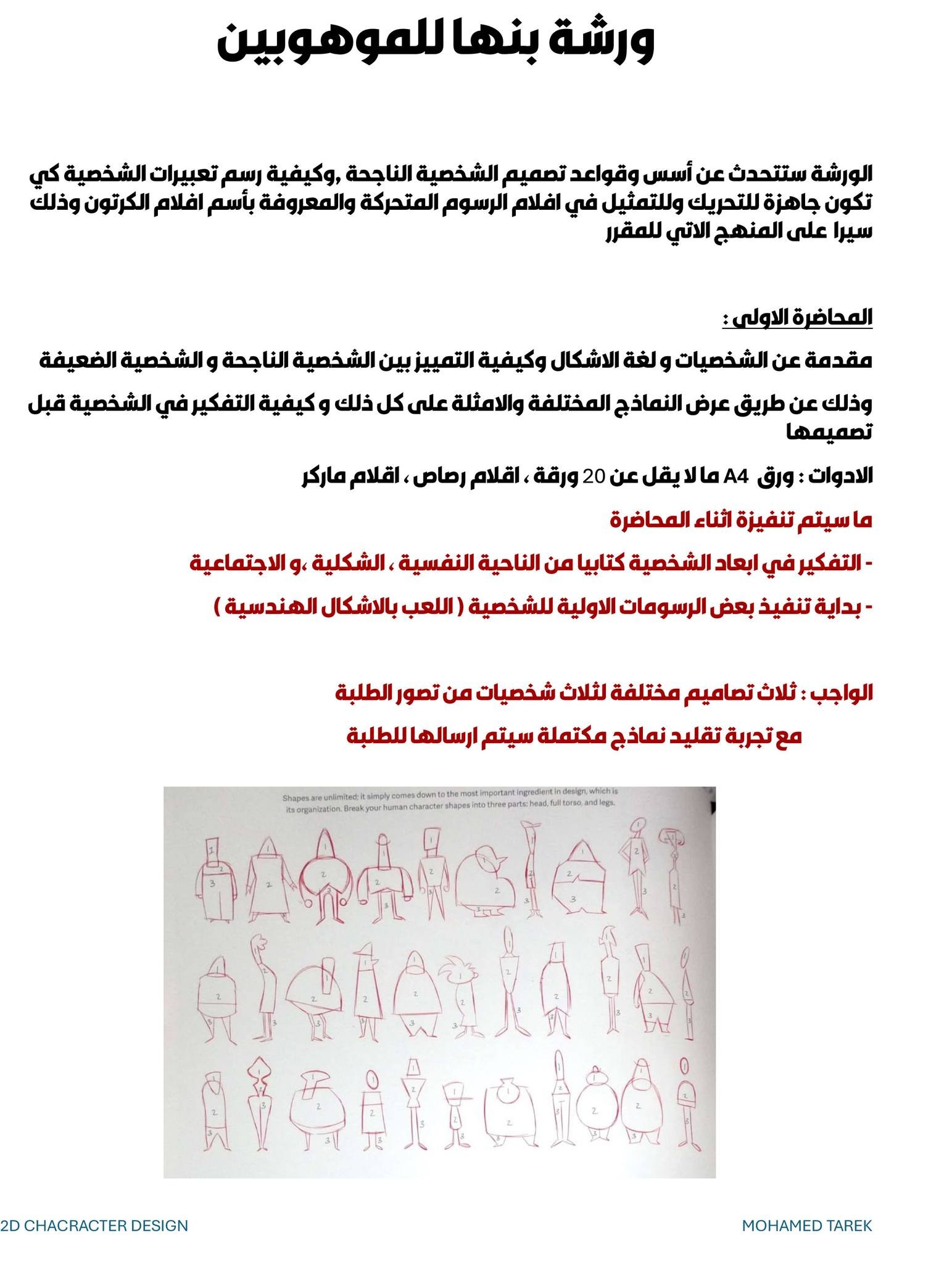 مركز رعاية الموهوبين بيقدم لك منحة مستوين ، المستوى الاول هتتعلم أسس وقواعد تصميم الشخصية الناجحة ,وكيفية رسم تعبيرات الشخصية كي تكون جاهزة للتحريك وللتمثيل في افلام الرسوم المتحركة والمعروفة بأسم افلام الكرتون ، وبعد انتهاء المستوى الاول هيتم اختيار المميزين واللى اعمالهم كانت مميزة للمستوى الثانى عشان يتعلموا التحريك للشخصيات اللي رسموها وابتكروها ، يقوم بالتدريب فنان الرسوم المتحركة /محمد طارق ،تخصص رسوم متحركة فنون جميلة بالزمالك .